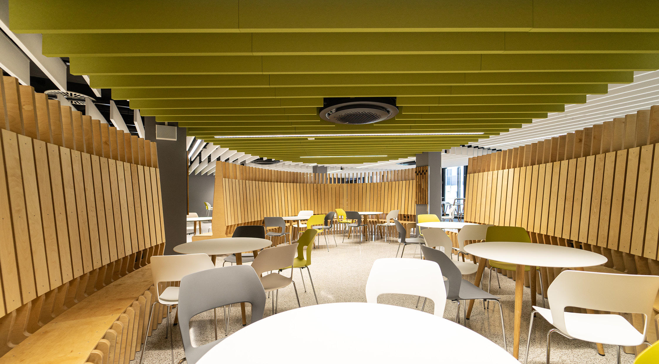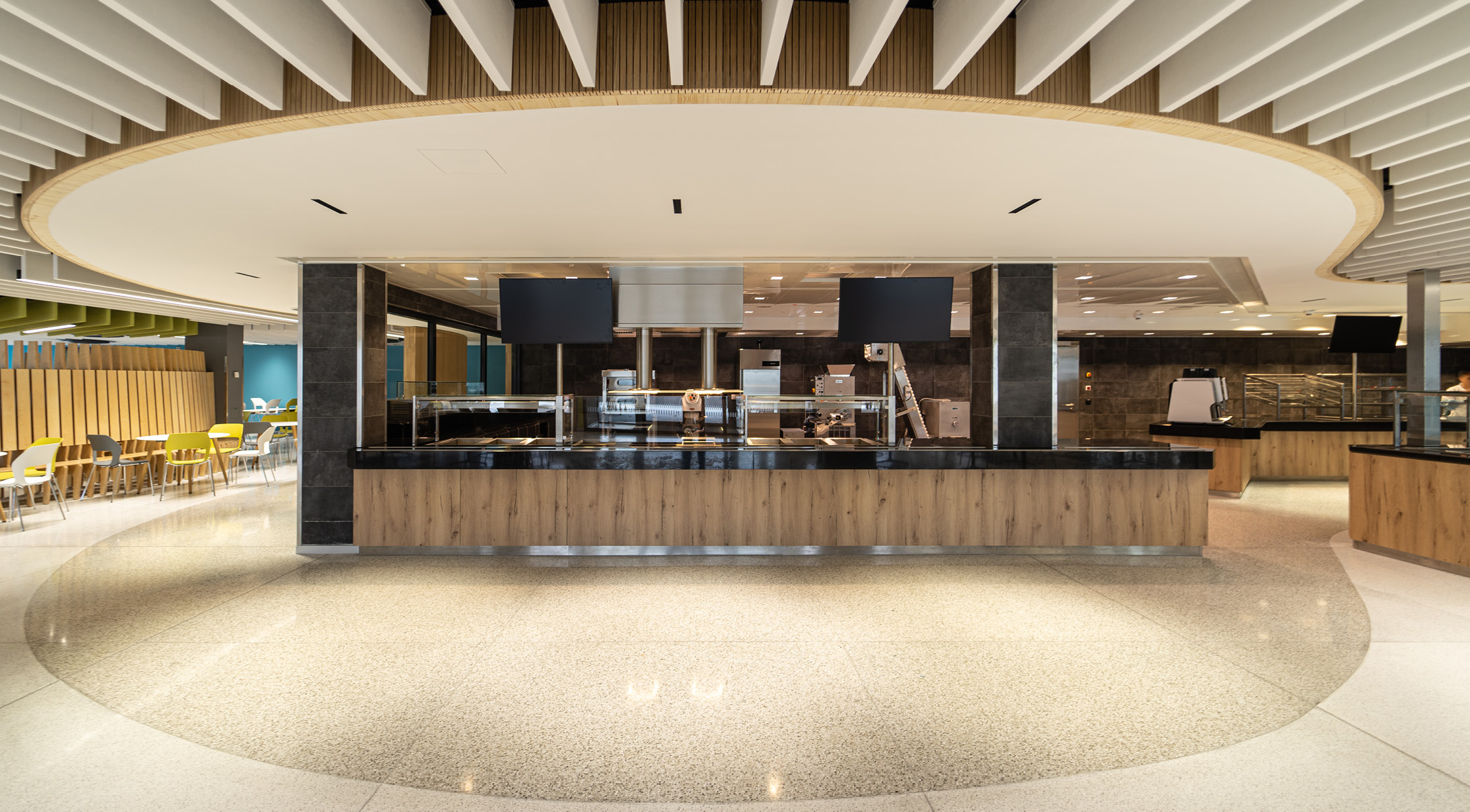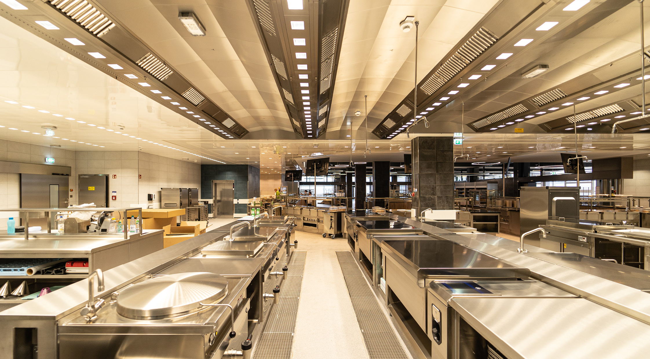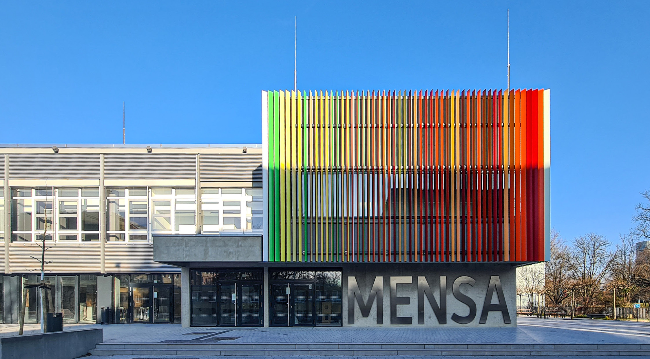 Die Mensa am Standort Zentralcampus BTU Cottbus-Senftenberg erfährt zusammen mit den Freianlagen eine umfassende Umgestaltung. Zum Forum und zur Universitätsstraße entstehen zwei markante neue Zugangsbereiche. Der Speiseraum wird durch einen dem Forum zugewandten Balkonanbau ergänzt und so das Platzangebot in den Freiraum erweitert. Vormals aufgegliederte Gastronomiefunktionen werden zentralisiert und doppelte Funktionen abgebaut. So entsteht eine großzügige Cafeteria im Erdgeschoss und ein Speisesaal für die Mensa im Obergeschoss. Durch das Konzept der offenen Küche wird neben dem Speisen nun auch das Kochen erlebbar gestaltet. Die BTU erhält an der Universitätsstraße einen neu konzipierten Bereich mit Co-Working Möglichkeiten einer Campus-Lounge und Räumlichkeiten für den Campus-Store und das Career-Center. Um den heutigen Anforderungen an Hygiene, Raumklima und Energieeffizienz gerecht zu werden sind umfangreichen Technischen Anlagen erforderlich. Für diese entsteht auf der ehemaligen Dachfläche ein neues Technikgeschoss. Die neuen Gebäudeteile werden mit einer mehrfarbigen Lamellenfassade hervorgehoben und die Dachfläche mit Photovoltaik ausgestattet.